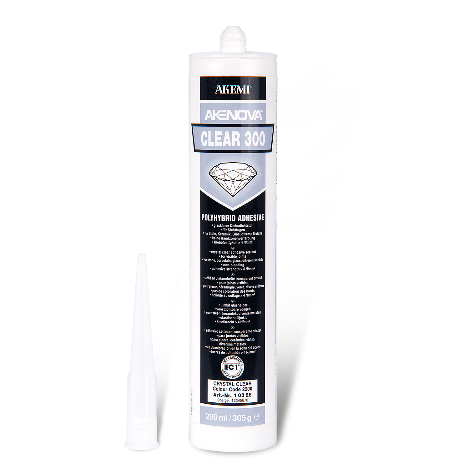 Generalist für Sichtfugen. Transparente Eigenfarbe ermöglicht Einsatz auf Untergründen in jeder Farbe. Zur Verklebung von Natur- und Kunststein (keine Randzonenverfärbung), wie Granit, Quarzit, Sandstein, Terrazzo mit Glas, Plexiglas, mineralischen, metallischen oder hölzernen Untergründen. Für den Innen- und Außenbereich, für vertikale und horizontale Verklebungen.