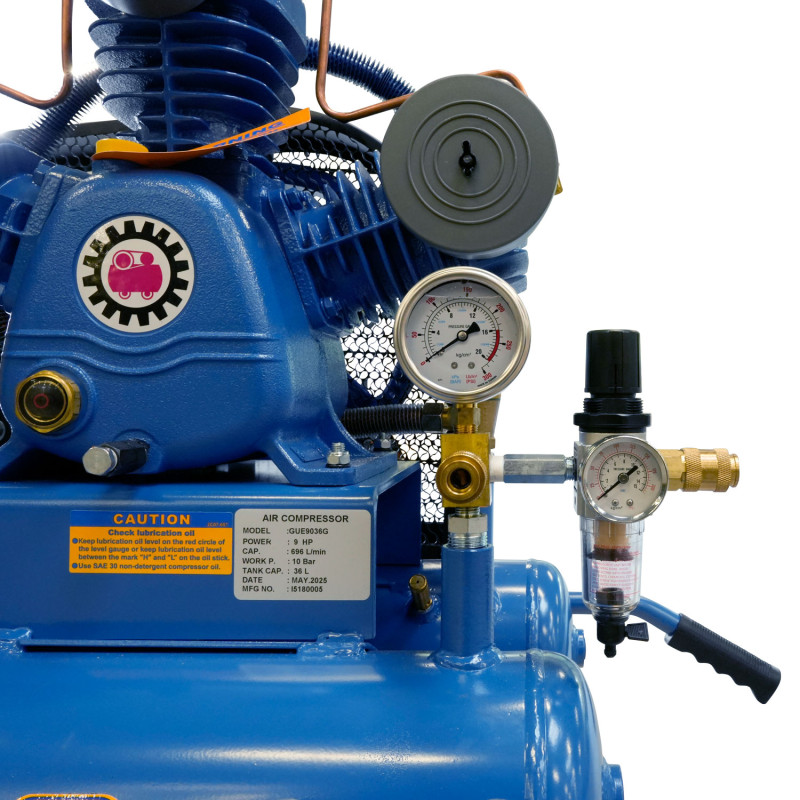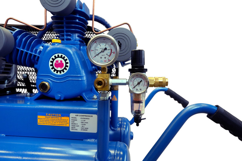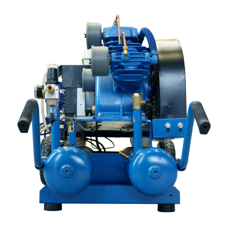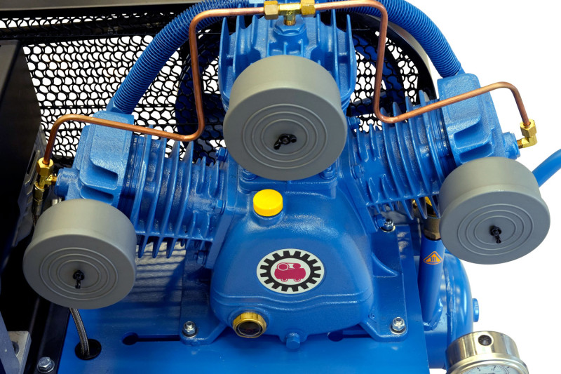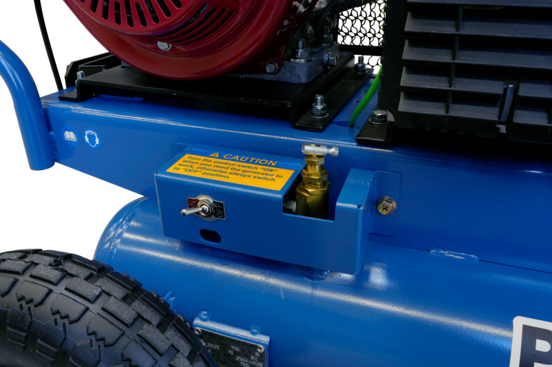- dank zwei großen Rädern lässt sich der Kompressor leicht und sicher auf jedem Untergrund bewegen